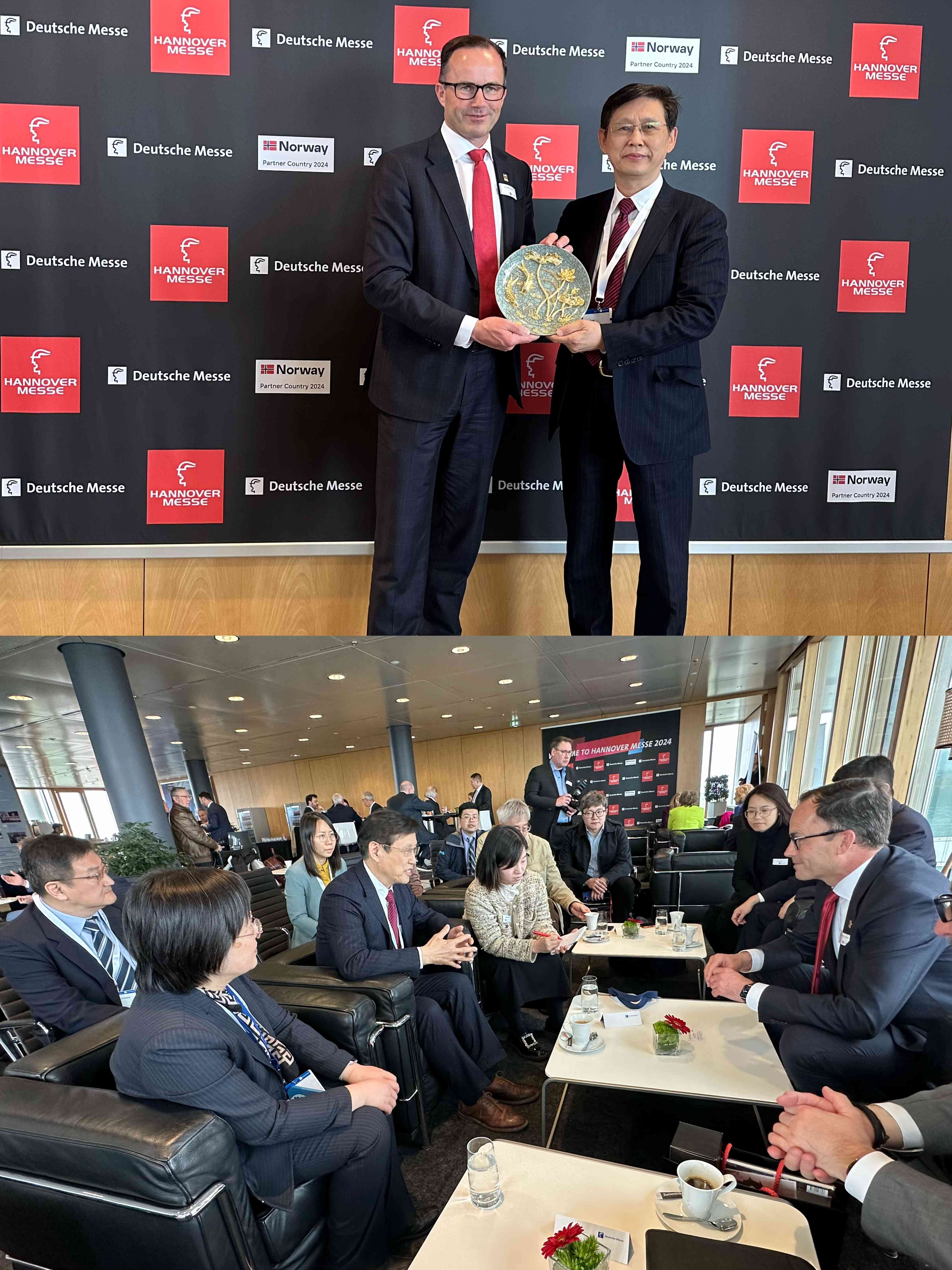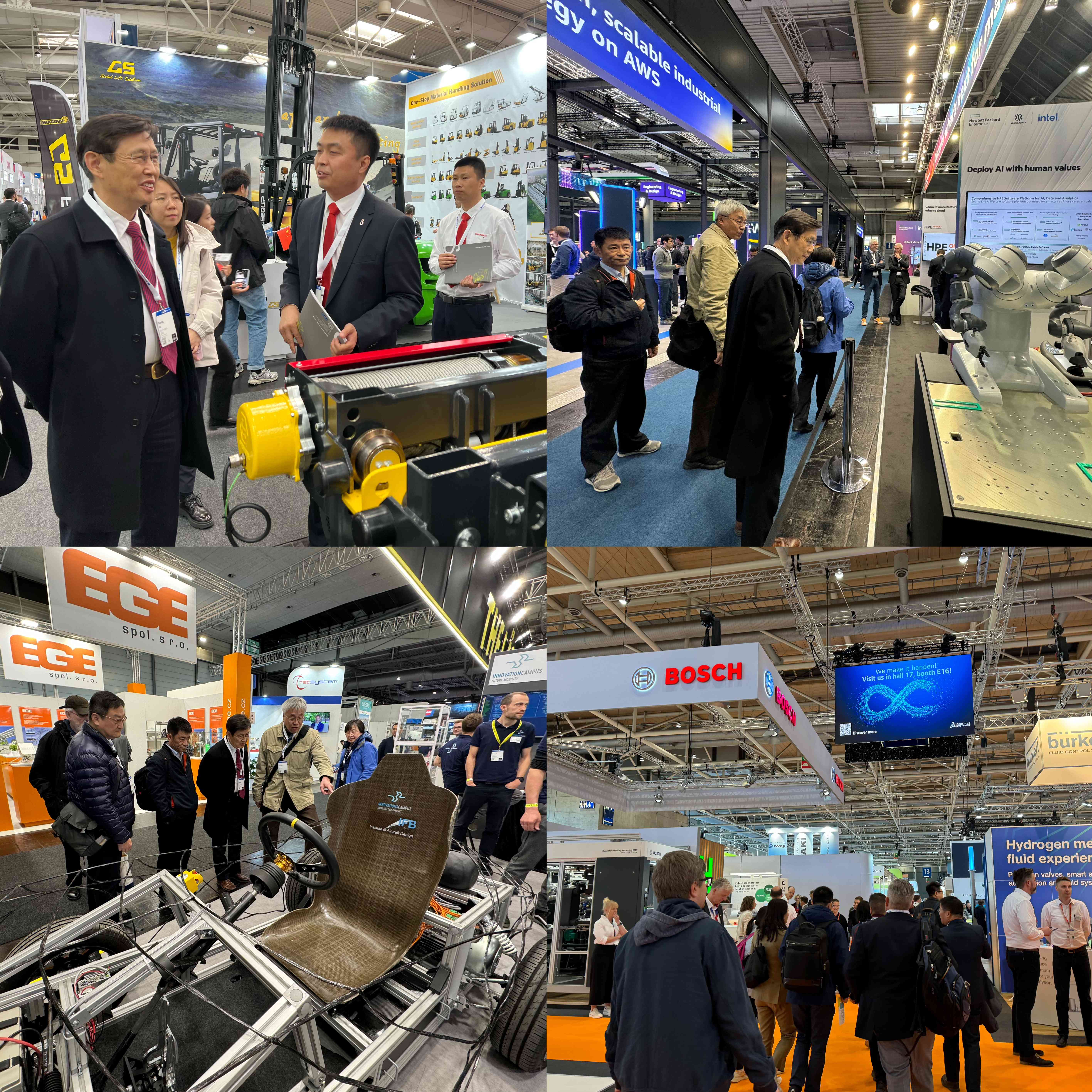 此次展会,188金宝搏网址 与北京起重运输机械设计研究院有限公司在物流展区联合设立展台(展台号:Hall5 D13),宣传和展示了学会及北起院推动物流装备行业技术交流的平台与成果。由188金宝搏网址 陆大明副理事长带队的25人代表团于2024年4月20日赴德国参展。在展会期间,陆大明副理事长会见了德国汉诺威展览公司董事局主席科克勒博士及负责公司亚洲展会的阿诺先生,双方对深入友好合作促进贸易发展及展会的提升交换了意见。陆大明副理事长还与国内组团单位西麦克国际展览有限责任公司、机械贸促会及参展企业代表进行了交流,了解了中国展商的展示内容、参展需求和订单签约量。此外,学会代表团先后参观了大众汽车工厂流水线、空客生产线、宝马摩托车生产厂、德国菲尼克斯电气集团总部、德国魏德米勒集团公司总部等,身临其境观察和了解了全球知名的制造业企业的创新技术和核心产品,更真切地感受到了德国百年企业对技术极致追求和对创新不断探索的先锋精神。在展会现场,同济大学陈明教授也实时发布了“跟着陈明教授一起看汉诺威工博会”的系列小视频,更直观地展现了汉诺威工博会的魅力与科技所在。